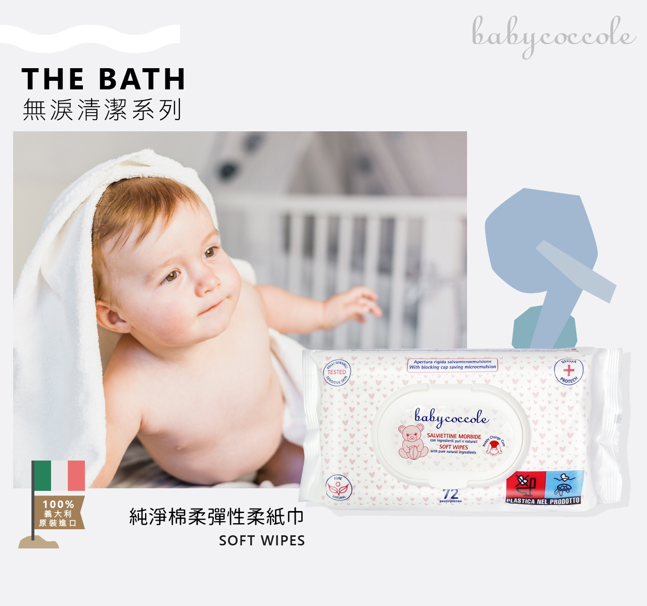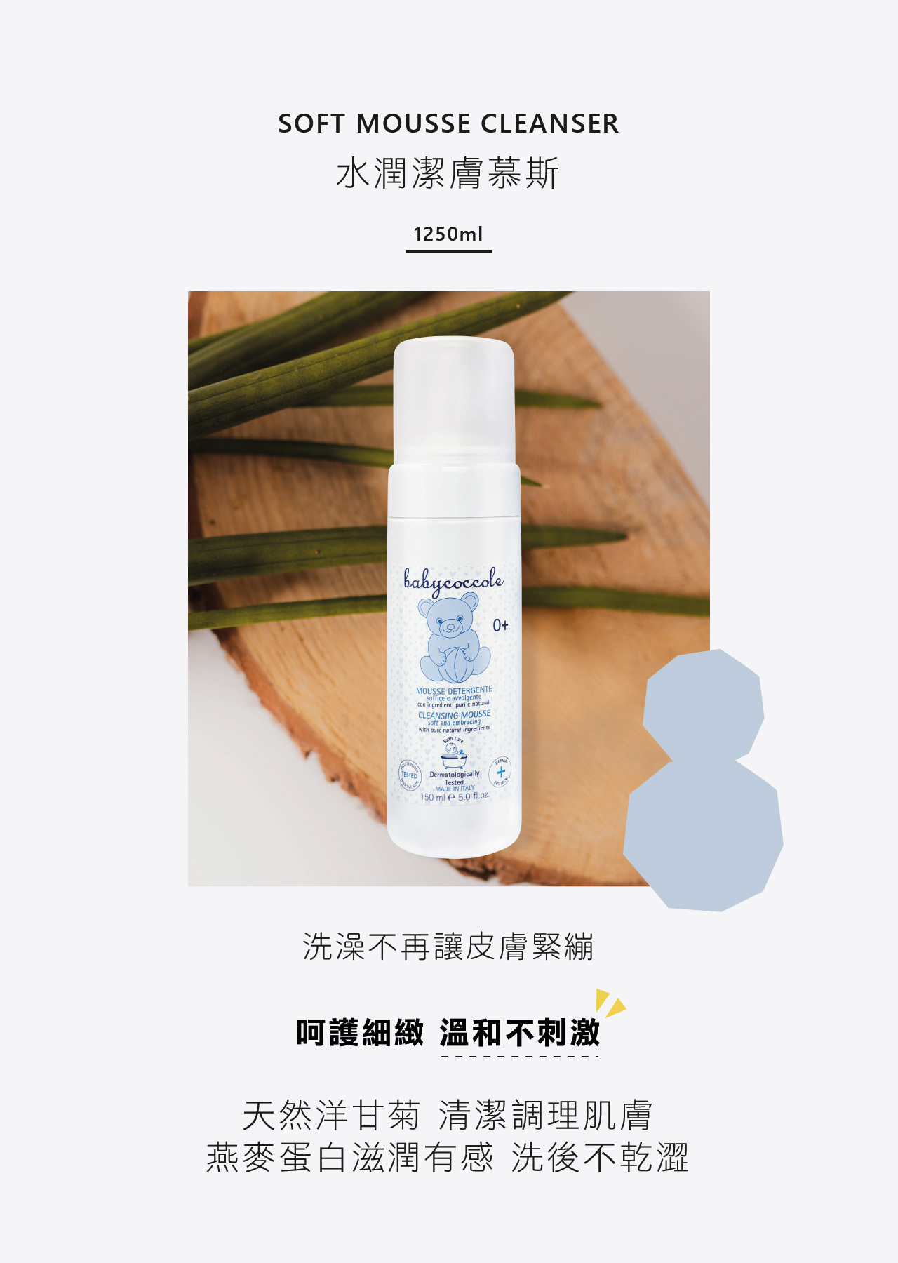 內含:水潤潔膚慕絲 150ml*1+嫩屁屁防護膏 75ml*1+純淨棉柔彈性柔紙巾(72抽)*2
