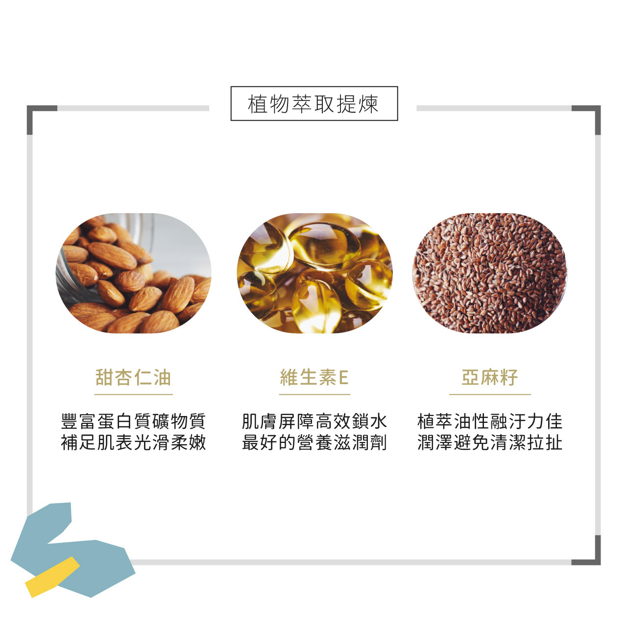 ✿植物萃取亞麻籽油,清潔同時強效保濕護膚,預防肌膚粗糙