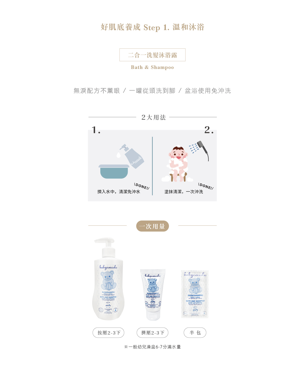 內含:二合一洗髮沐浴露 30ml*1+清爽保濕乳液 30ml*1+液態爽身粉 30ml*1+寶貝可可麗 COCCO袋*1
