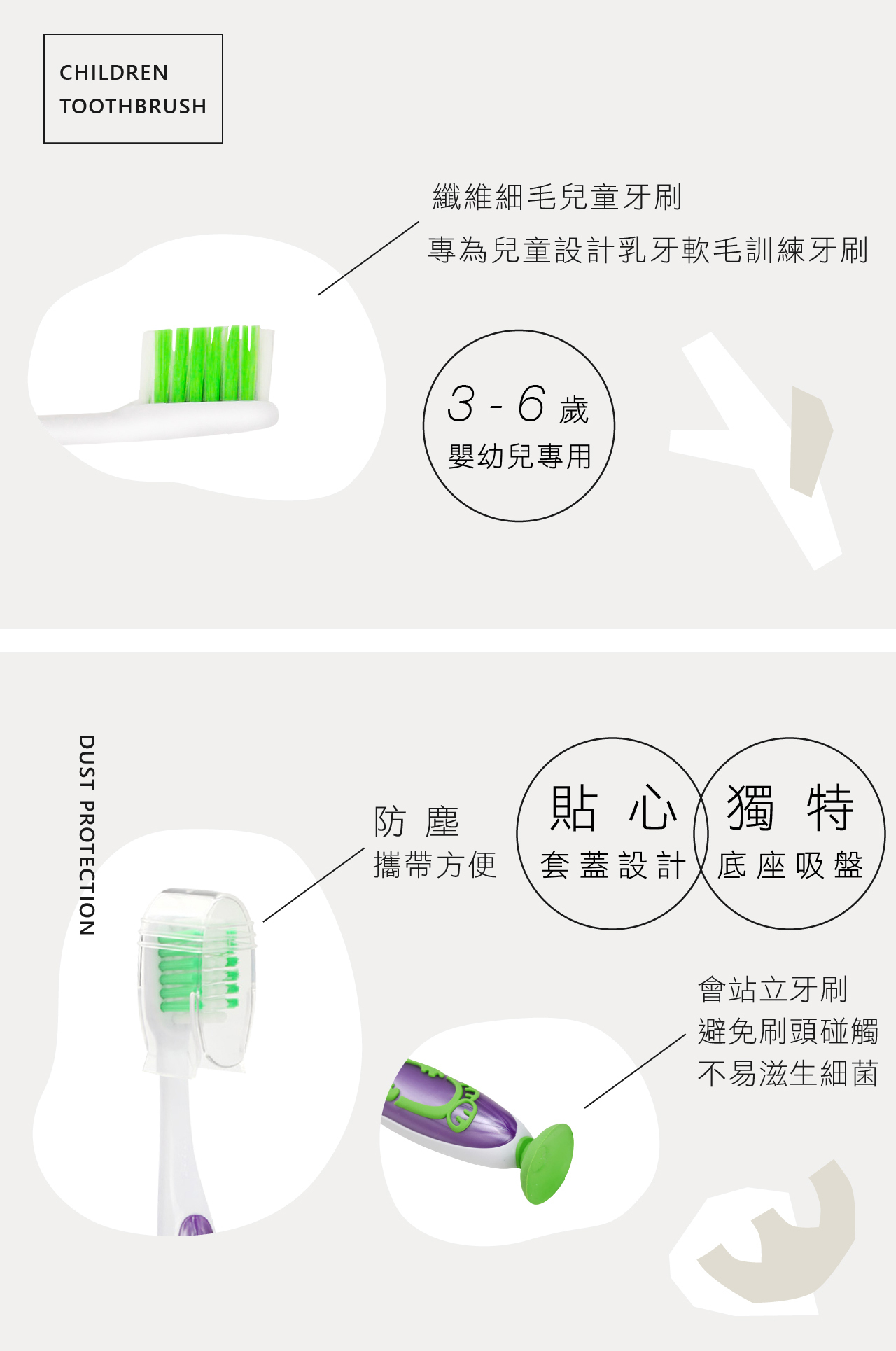 小型刷頭適合幼兒清潔口腔內細微角落.