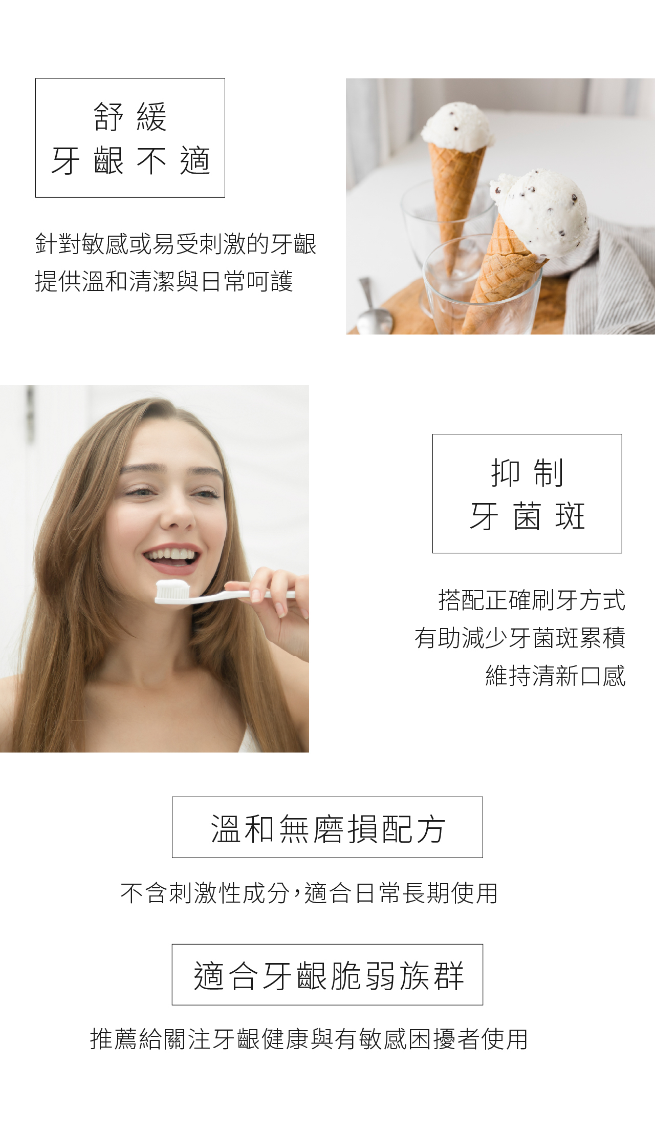 •適合牙齦脆弱族群:推薦給關注牙齦健康與有敏感困擾者使用。