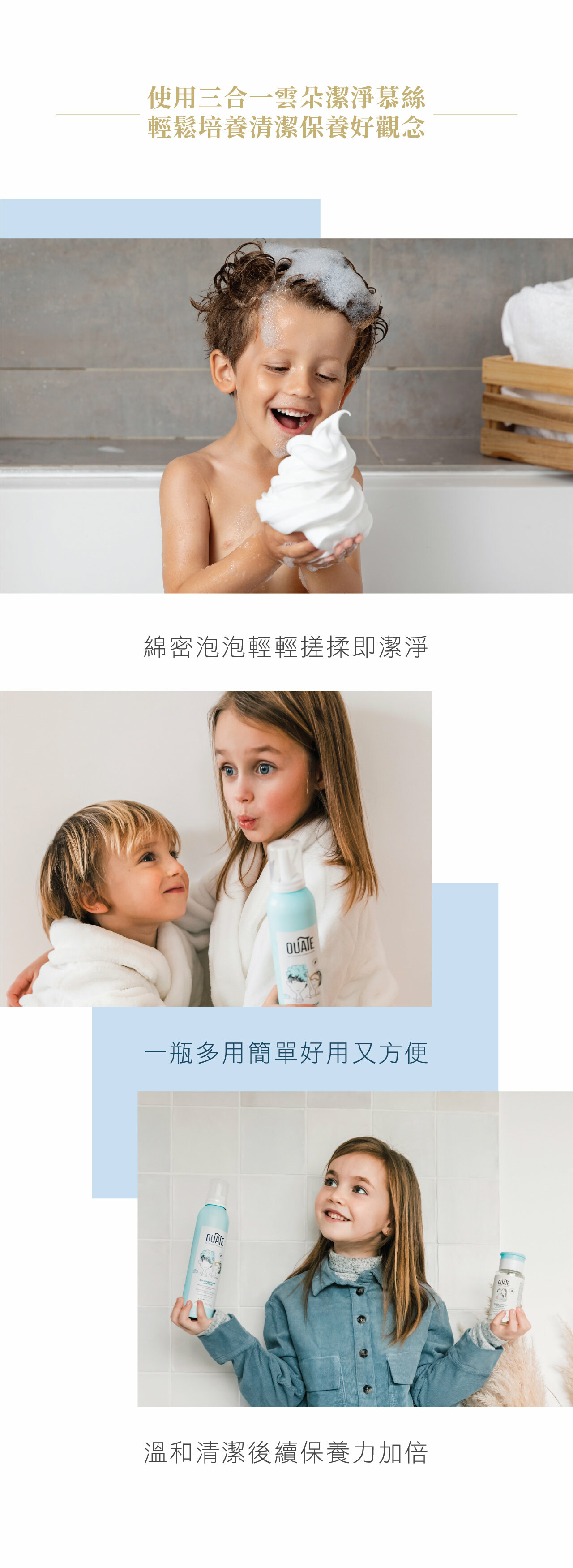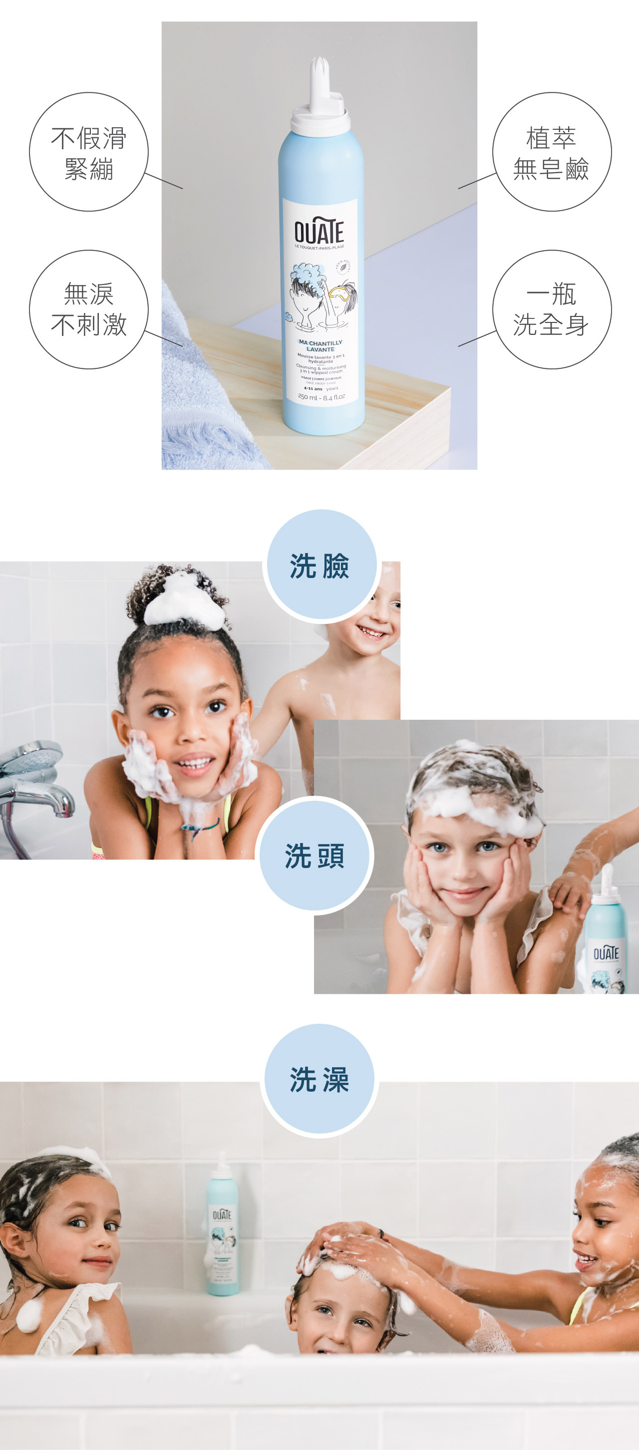 泡泡綿密程度就像雲朵般柔滑,從臉、頭髮到身體都可清潔,不含皂鹼與有害化學成分溫和洗淨全身肌膚。
